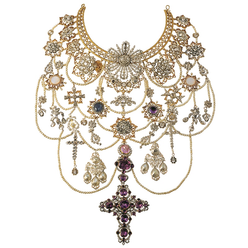 PEKTORAL GOSPE OD MONTE BERICA Pektoral Gospe od Monte Berica Vicenza, 1900. Pektoral Zlato, srebro, dijamanti, ametisti, safir, biseri, staklena pasta Zajednica braće servita Franjevaca Marije od Monte Berica