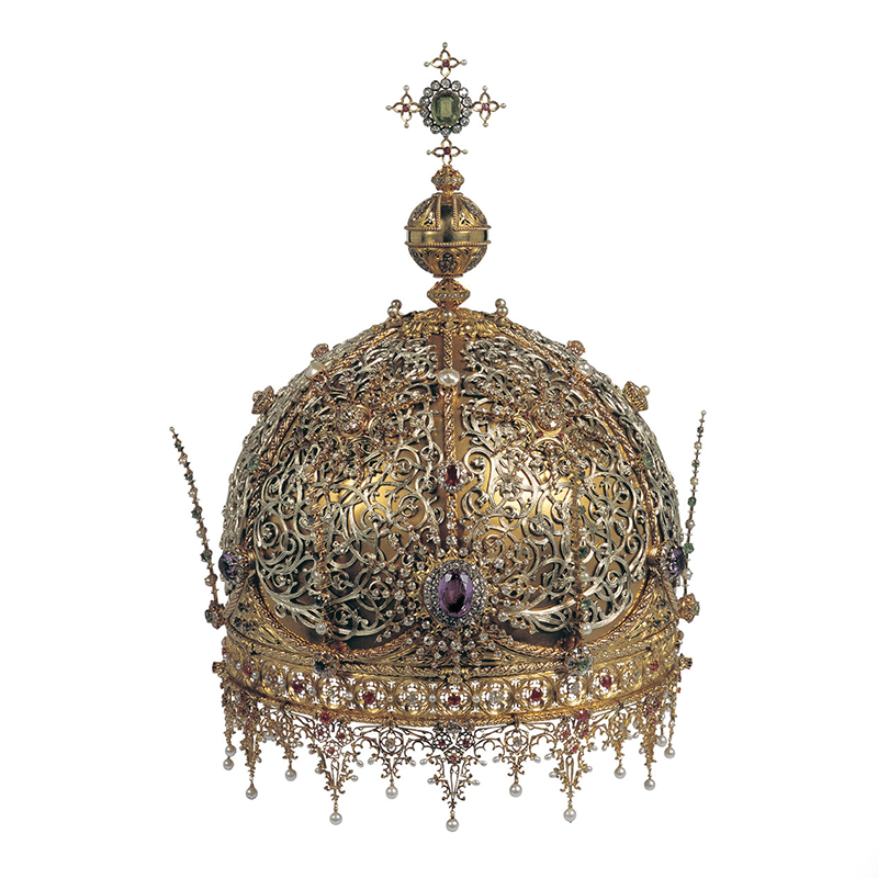 kruna Madone od Monte Berica Vicenza, 1900. g Zlatna kruna , bijelo zlato (pola zlato, pola srebro), dijamanti, peridot, ametist, rubini, safiri, biseri, obojeno kamenje Zajednica braće slugu Marijinih od Monte Berica