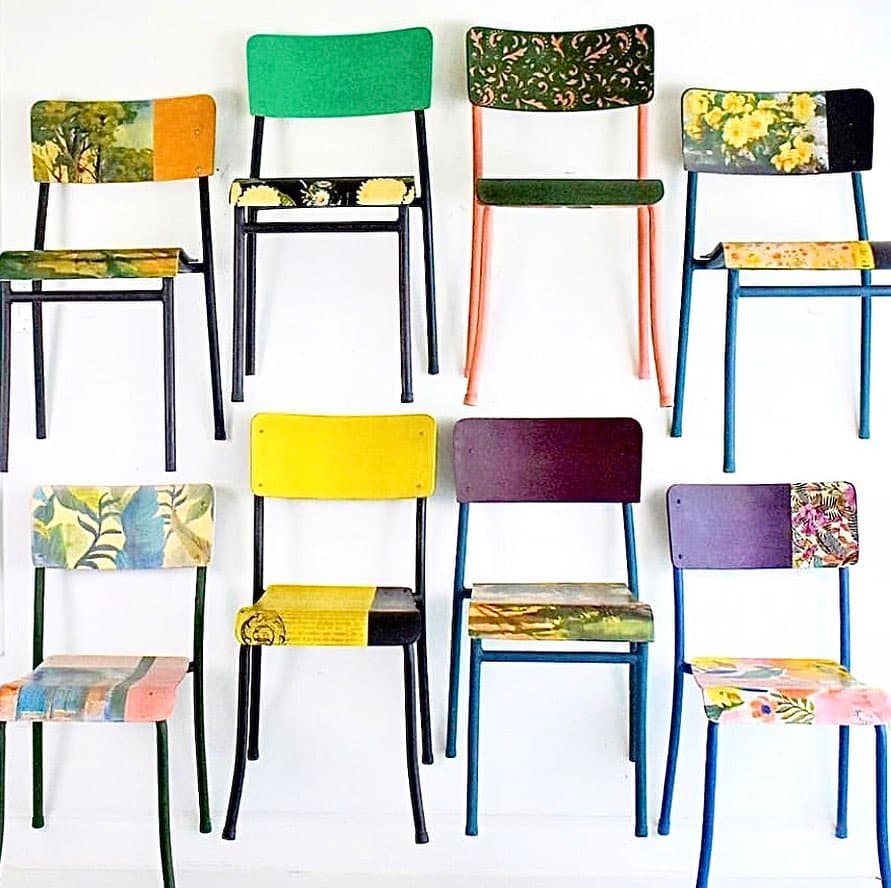 Najjednostavnija tehnika kojom možete urediti stare, malo “ofucane” stolice. Dobiti će novi sjaj, a možete ih prilagoditi bojama ili dezenu ostalog namještaja. Možete koristiti salvete, novine, papir za umotavanje ili kombinirati boju i samo dijelove obraditi decupage tehnikom.