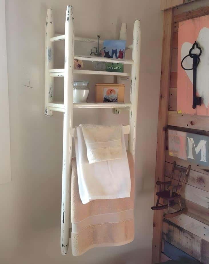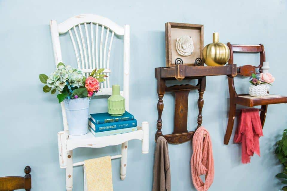 Za ovakvu prenamjenu, potrebno je malo više alata. Ukoliko ne iskoristite cijeli stolac, potrebna vam je pila, čekić i čavlići. Hoćete li nove police bojati ili ostaviti kakve jesu, ovisi o vama.
