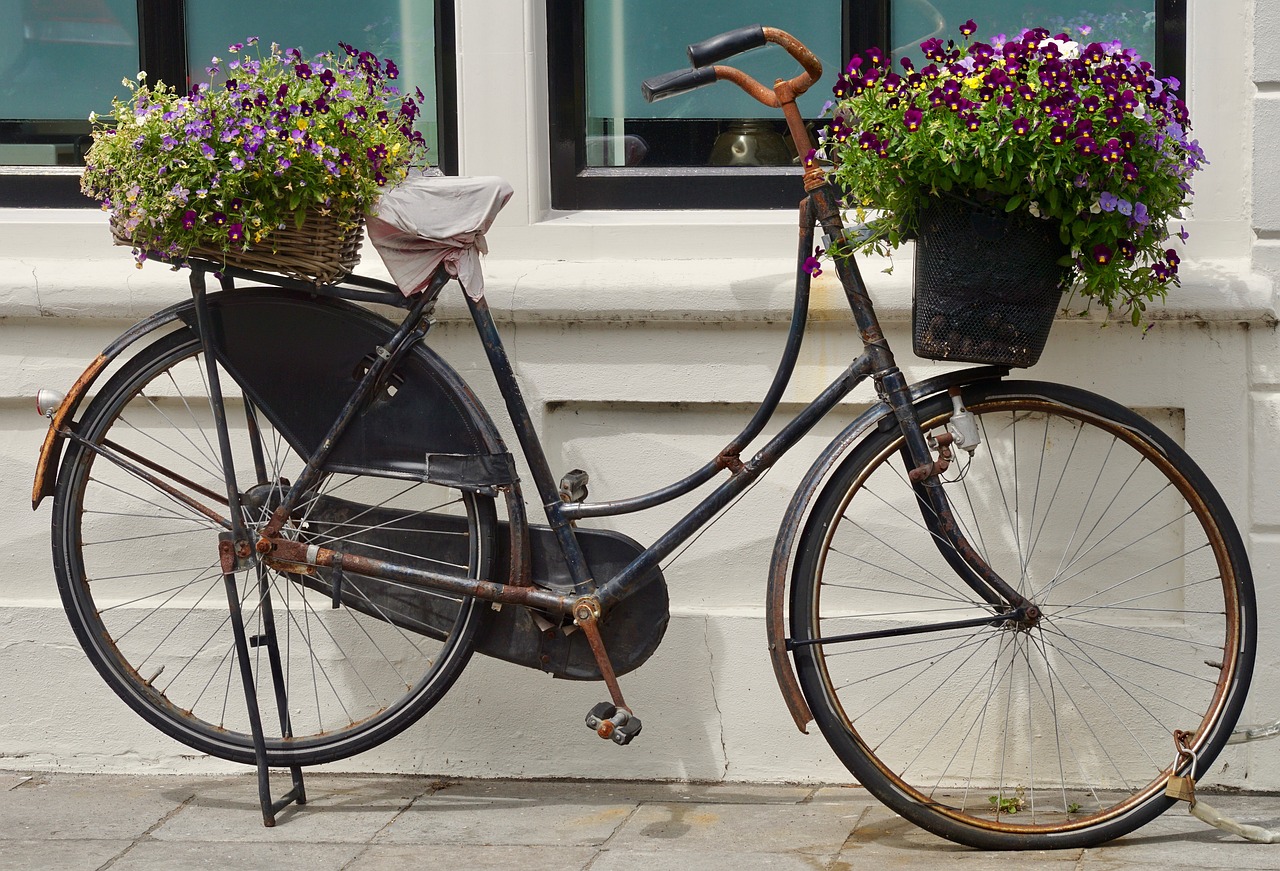 Stari obojeni bicikli ili dječji tricikli već se duže vrijeme koriste kao dio vrtnog namještaja. Stabilni su i imaju pregršt mjesta za cvijeće. Sve češće ih koriste i na javnim površinama.