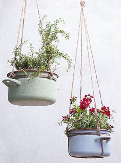 Staro cjedilo idealne je za cvijeće koje ne voli previše vode. Lonce možete lako objesiti uz pomoć malo špage. Možete ih i poslagati u nekom kutku po veličini.