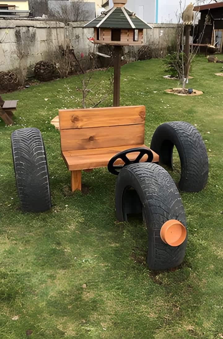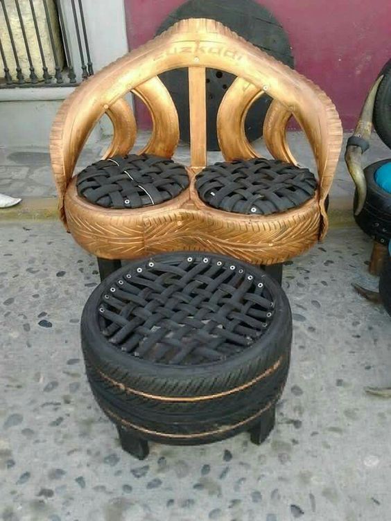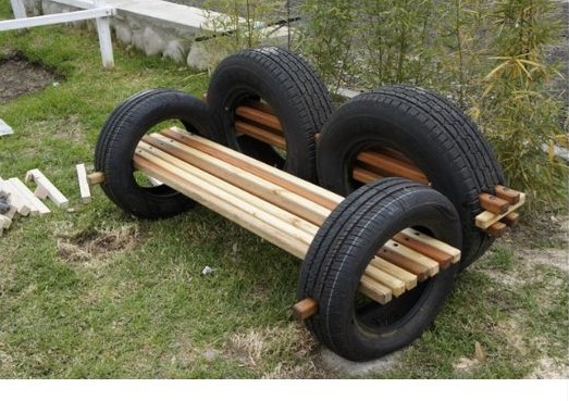 Auto gume odolijevaju svim vremenskim uvjetima. Za prenamjenu u vrtne stolice i klupe trebat ćete dodatne materijale. Sjedeća mjesta treba (unutrašnju rupu) treba popuniti. Možete koristiti daske, grane, šperploče, žice, špagu…