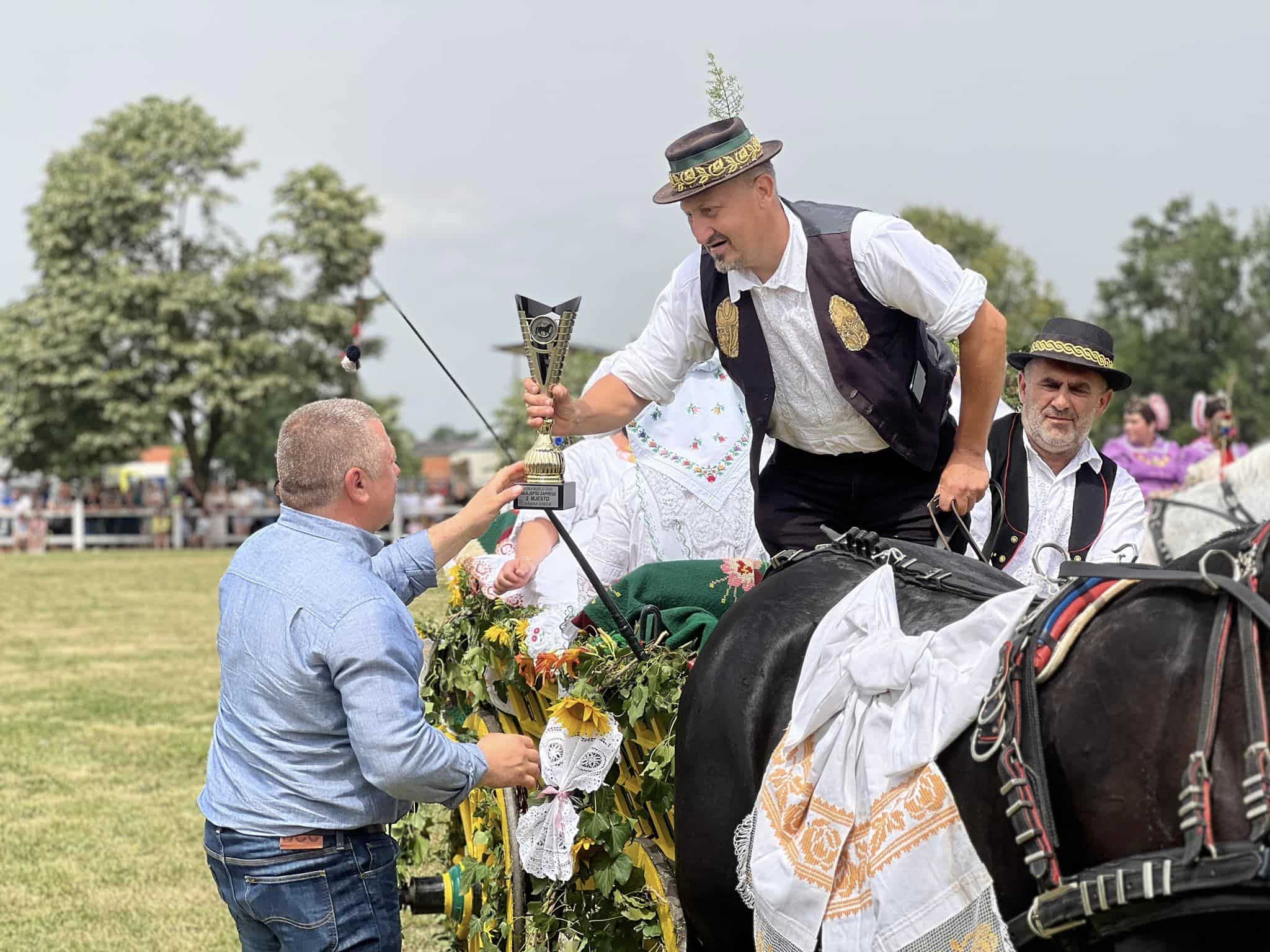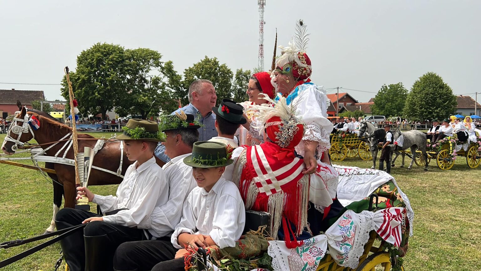 Babina Greda, 09.06.2024. – Tradicionalna, 43. kulturna i gospodarska priredba “Konji bijelci” održana je u nedjelju u Babinoj Gredi na županjskom području, uz natjecanja konjogojaca u brojnim vještinama rada s konjima, a veliku pozornost posjetitelja izazvao je defile 30-tak svatovskih zaprega.