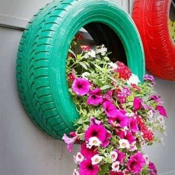 Od guma možete oblikovati različite forme, ovisno o prostoru kojim raspolažete. Osim vizualnog efekta, vaše cvijeće će biti zaštićeno. Bojanjem guma u dvorište ćete unijeti veselost i šarenilo. To je posebno korisno u sjenovitim dijelovima.