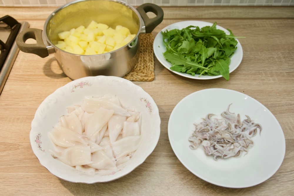 Brza salata sa lignjama, krumpirom i rukolom može se naravno poslužiti kao lagani ručak ili pak konkretnija večera. Jednostavno se radi, pogotovo ako nabavite već očišćene lignje. Tada ih je potrebno samo oprati i narezati. No, ako ste u mogućnosti nabaviti svježe ulovljene jadranske lignje, dajte si truda sa čišćenjem jer im je okus fenomenalan i puuuuno bolji od bilo koje zamrznute lignje kupljene u trgovini.