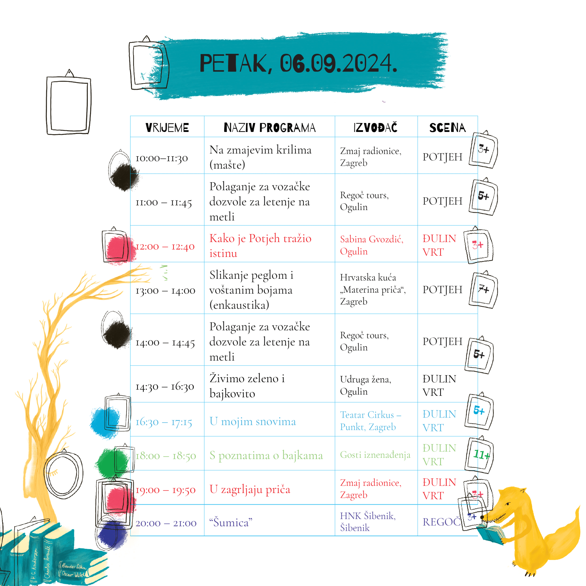 Od radionica do bajkaonica, od kreativnog stvaranja do pripovijedanja, od letenja na metli do leta na zmajevim krilima, od pohađanja klaunovske škole do posjeta vilinskim dvorima, 19. Ogulinski festival bajke prepun je sadržaja za sve uzraste. Dobrodošli u ogulinsku bajku!