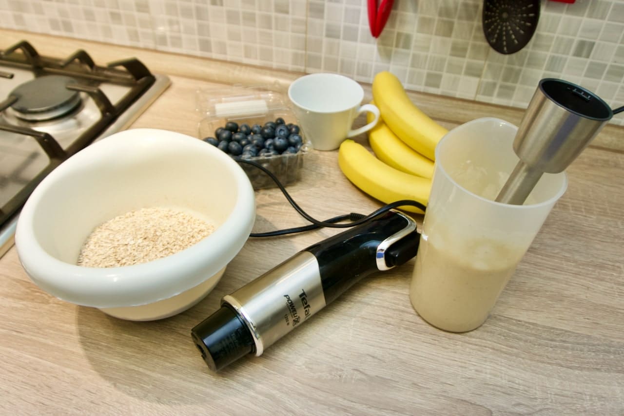 - Zobene pahuljice samljeti u krupnije brašno. Banane pretvoriti u kašu štapnim mikserom ili vilicom.