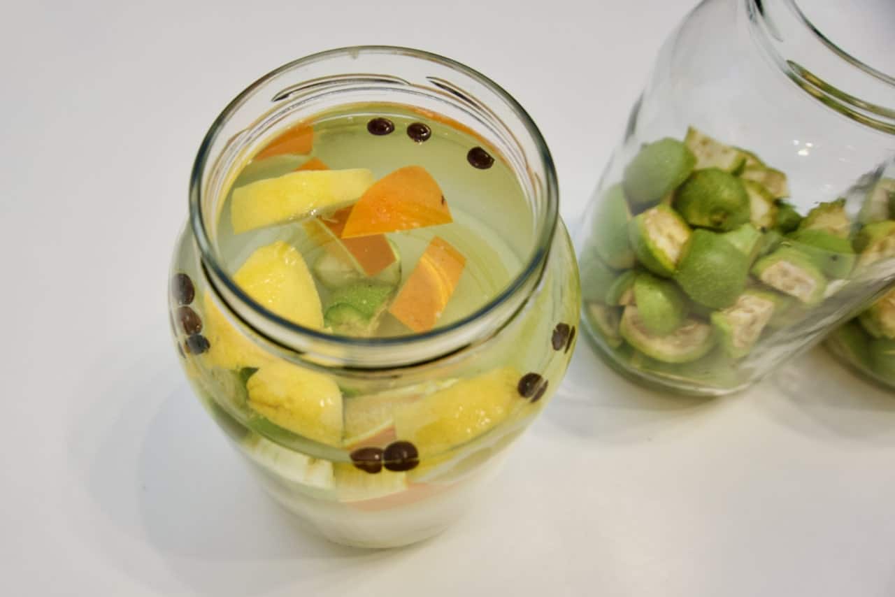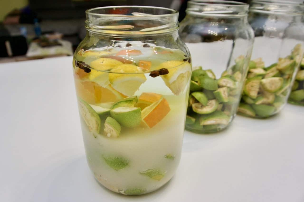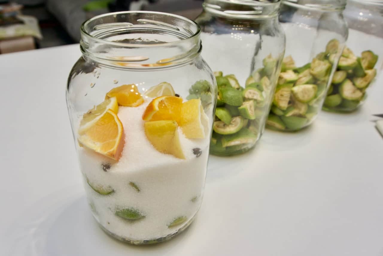 • Orahe prije svega oprati, a zatim ih narezati na četvrtine. Ovo obavezno treba raditi u rukavicama jer orah pušta tamnu boju koja se jako teško skida sa kože. Također treba osigurati radnu površinu na kojoj se radi kako se i ona ne bi zaflekala od oraha, jer i to se teško čisti.