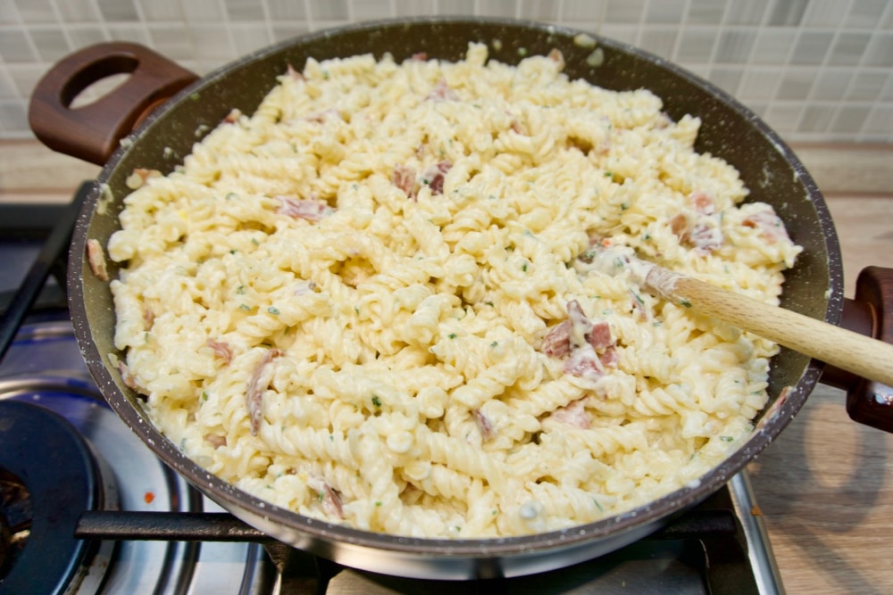 Tjestenina sa vrhnjem, sirom i pršutom