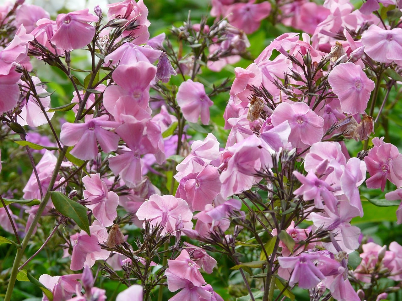 Visoki plamenac ( Phlox paniculata ) velikodušno je cvjetajući grm kojeg vole leptiri. Njegovi visoki cvjetni grozdovi – ili metlice – mogu se rezati u kolovozu kako bi se pospješilo svježi nalet cvijeća.