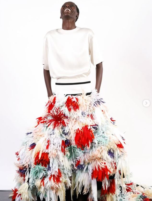 Konačni ansambl, šarena, voluminozna suknja koja je izgledala kao da je napravljena od kombinacije isjeckanog cvijeća i perja, uparena s jednostavnom svilenom majicom, bila je radosna i frenetična – baš kao i publika, koja je Blazyju priredila ovacije dok je izlazio kako bi se prvi put poklonio za Chanel.