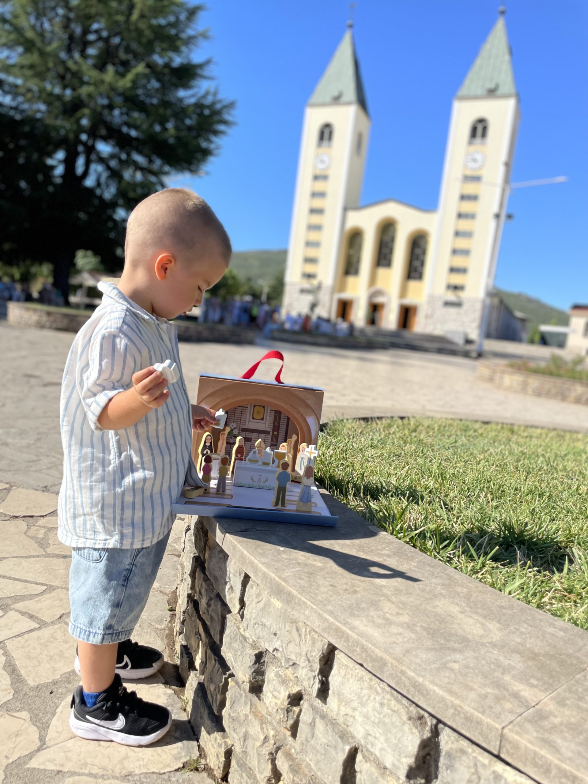 Međugorje – set za igru zasigurno predstavlja obiteljski duhovni suvenir koji raste zajedno s djetetom. Potiče ga da u vlastitom domu napravi svoje „malo hodočašće“ našoj Kraljici Mira.