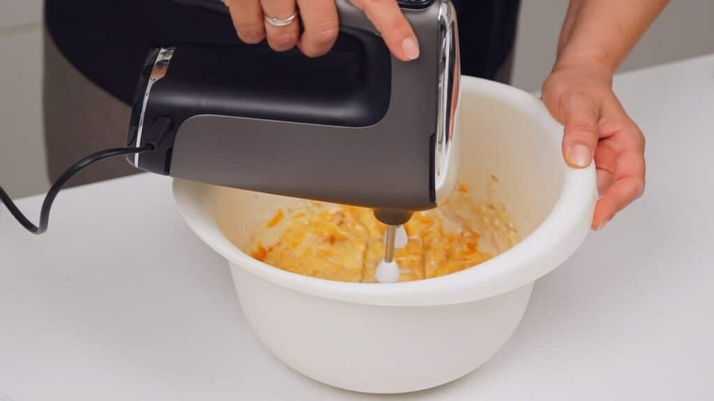 - U većoj posudi miksati sir, jaja, zgnječene bundeve i 2 žlice šećera. Dobit ćete prilično rijetku masu. Izliti smjesu na pripremljenu podlogu od keksa pa peći u pećnici na 170ºC 40 minuta. Ohladiti.