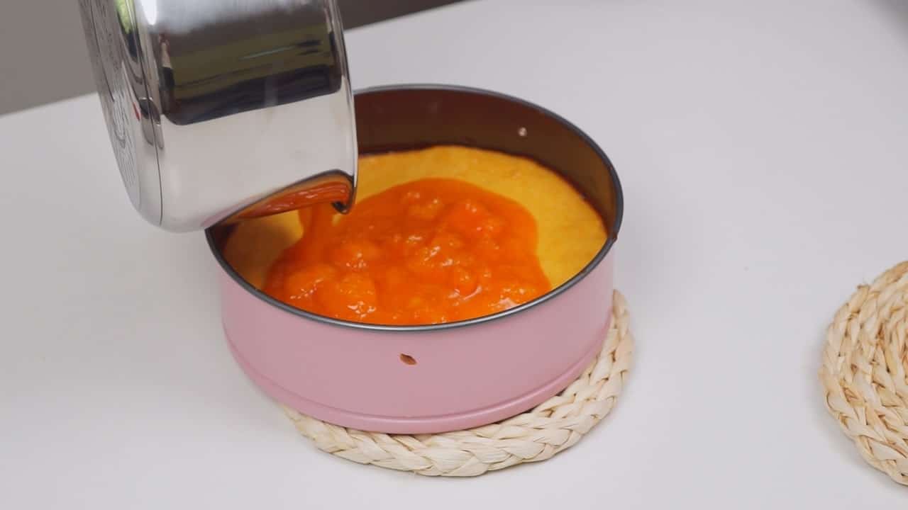 - Za preljev najprije želatinu promiješati za 4 žlice vode i ostaviti da nabubtri. Tada ju zagrijati i otopiti. Pomiješati ostatak bundeva i tekućinu u kojoj su se kuhale pa uliti želatinu i dobro promiješati. Ovako pripremljenim preljevom preliti prohlađeni cheesecake. Ostaviti prvo na sobnoj temperaturi, a potom u hladnjaku par sati da se potpuno ohladi i stisne. Tek tada maknuti obruč i poslužiti rezano na šnite.
