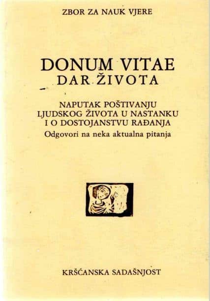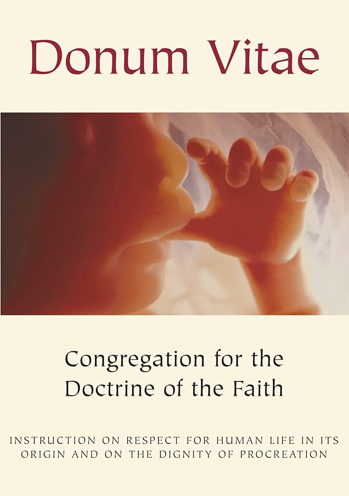 U dokumentu Donum Vitae stoji da se dar ljudskog života mora ostvariti u braku kroz posebne i isključive čine muža i žene, u skladu sa zakonima upisanim u njihove osobe i u njihovu zajednicu.