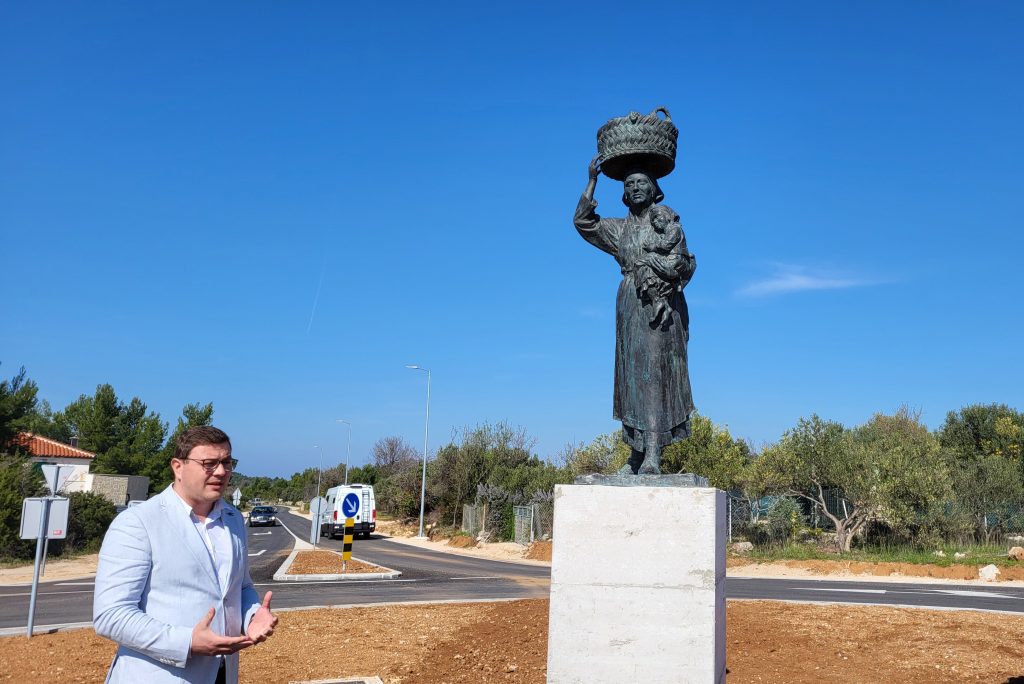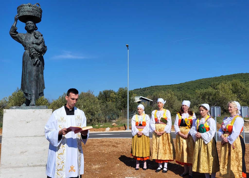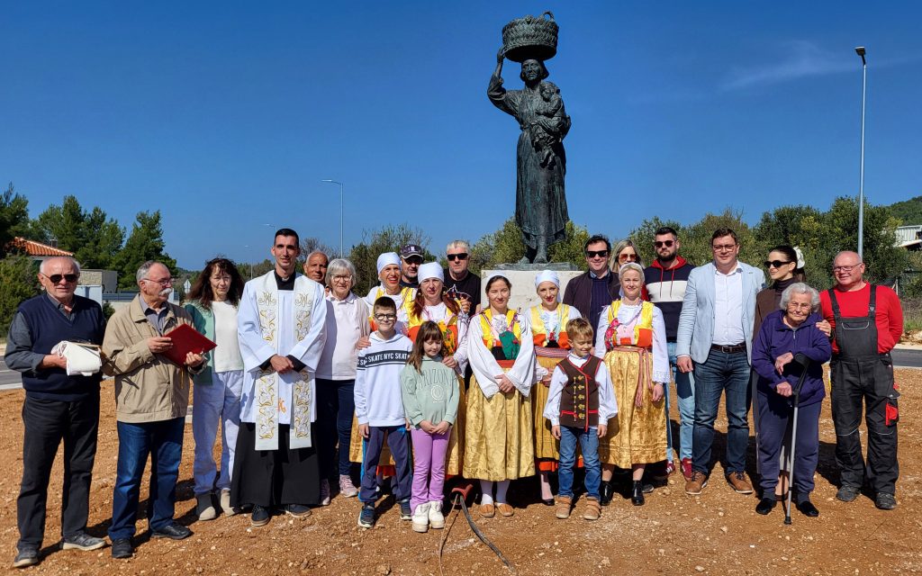 Tribunj, 6.3.2026.- U Tribunju je u petak, ususret Danu žena, otkriven spomenik “Težakinja” djelo kipara Tea Baučića.