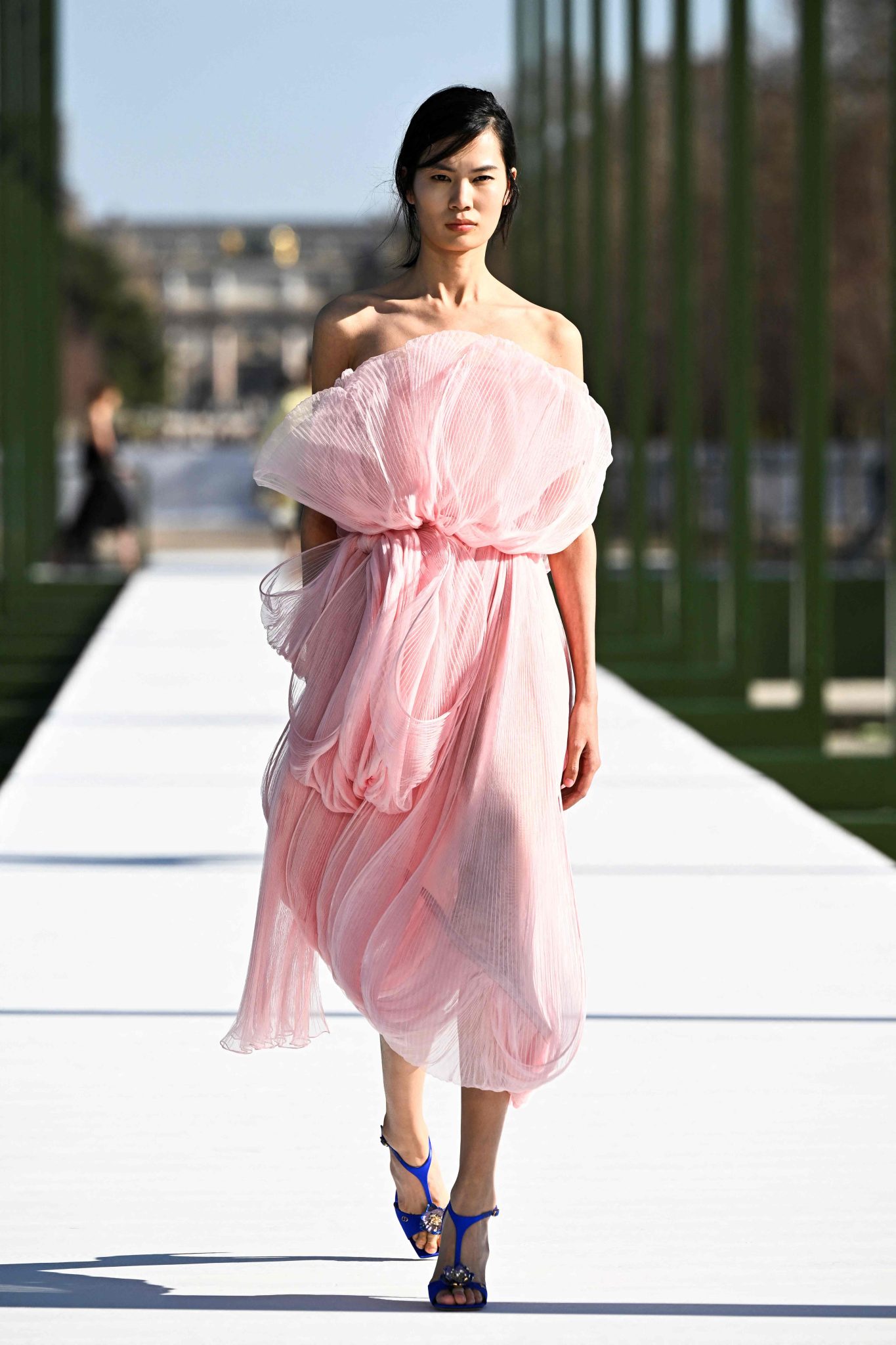 Predstavljena u okruženju inspiriranom staklenikom s lopočima, pista je odražavala romantiku Tuilerija, istovremeno kanalizirajući cjeloživotnu fascinaciju prirodom osnivača Christiana Diora.