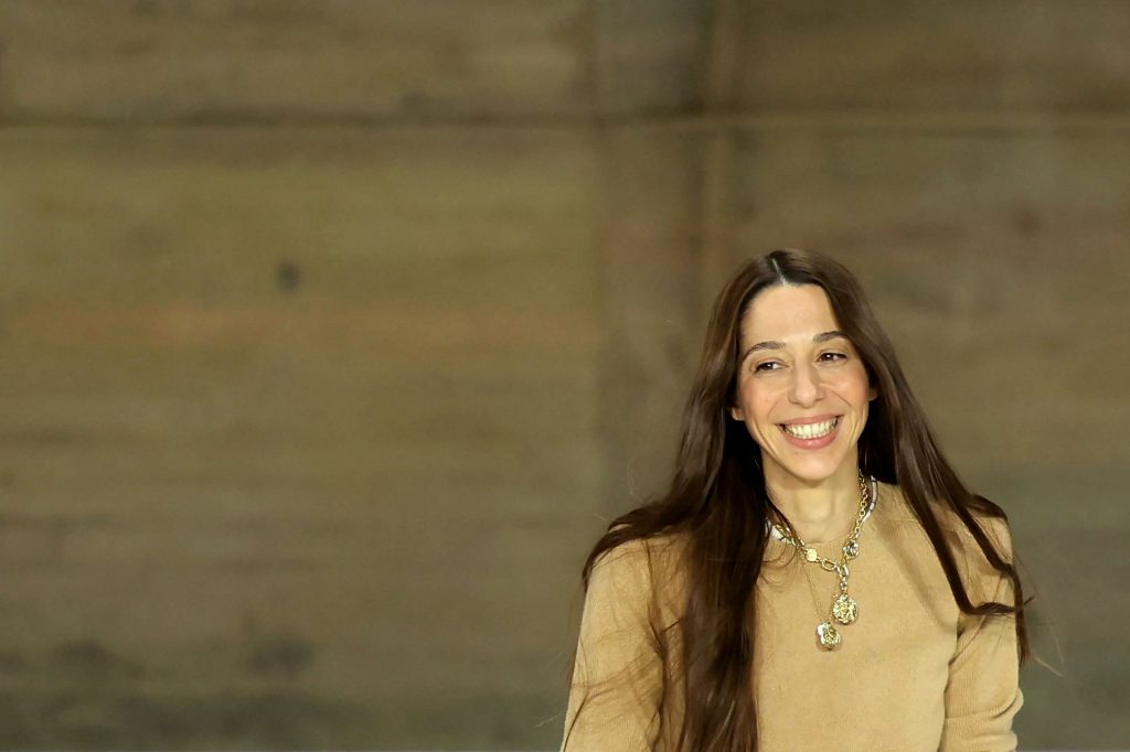German fashion designer Chemena Kamali acknowledges the audience at the end of the Chloe Women’s Ready to Wear Fall/Winter 2026-2027 collection fashion show as part of the Paris Women Fashion Week, in Paris, on March 5, 2026. (Photo by Thomas SAMSON / AFP)