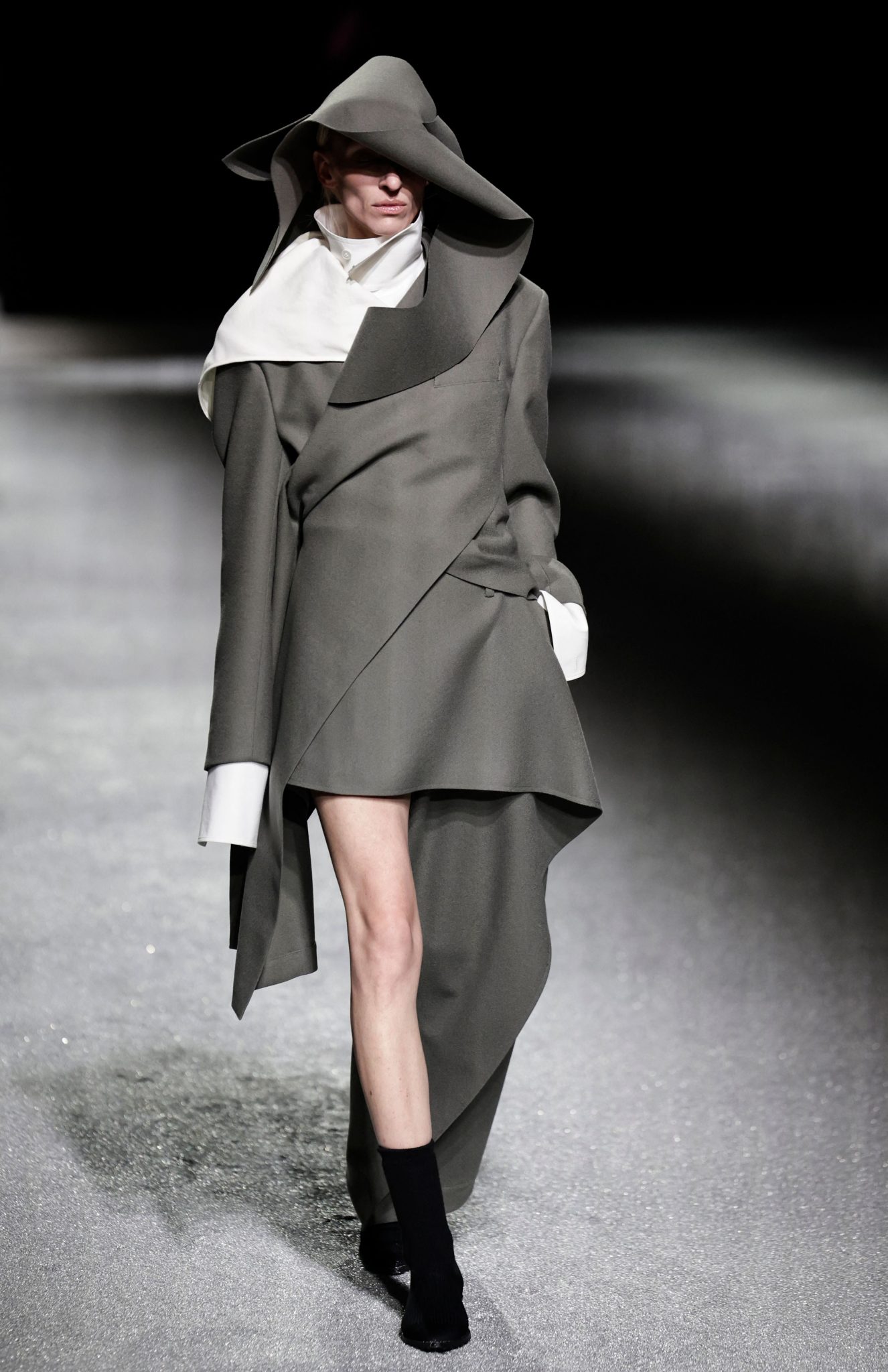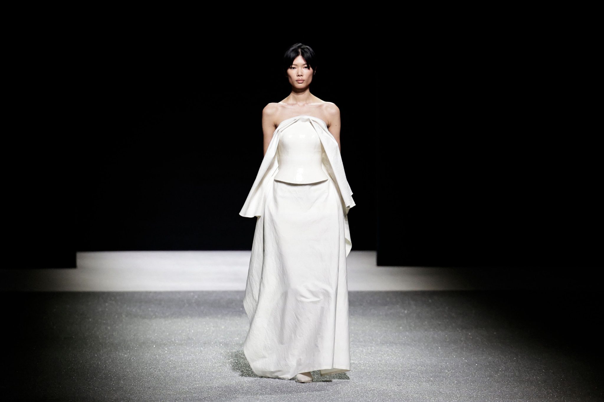 Kolekcija je uravnotežila zemljanu suzdržanost s trenucima prelijevajuće fantazije, dok su tkanine tkane lureksom i silikonom svjetlucale uz prirodnu gazu i svileni žersej. Kako je revija napredovala u večer, aerodinamični kaputi i haljine nalik silfu evocirali su noćni let, oživljavajući kolekciju osjećajem kretanja, lakoće i poetske transformacije.