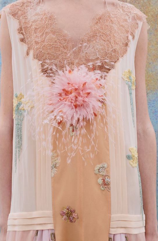 Anderson je reinterpretirao kućne kodove kroz hirovito krojenje, skulpturalne peplume i cvjetne ukrase koji su djelovali istovremeno nostalgično i moderno. Rezultat je bila svjetlom ispunjena, maštovita kolekcija koja je uravnotežila Dierovu povijesnu ženstvenost s Andersonovom subverzivnom, suvremenom oštrinom.