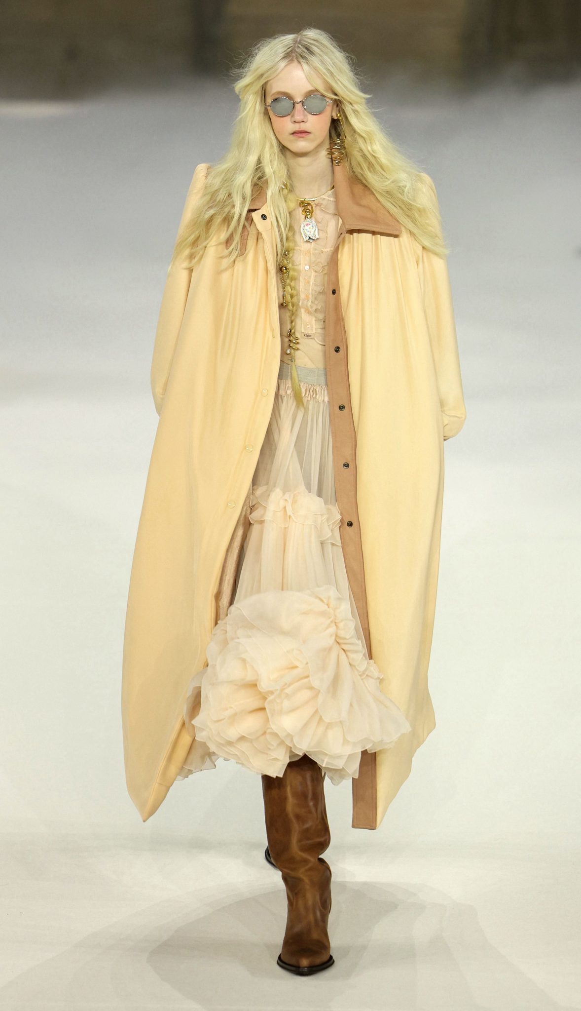 Pod vodstvom kreativne direktorice Chemene Kamali, Chloé je nastavio s oživljavanjem romantične, boemske ženstvenosti. Kolekcija jesen-zima 2026. inspiraciju je crpila iz folklorne odjeće i obrta, pretvarajući ih u lepršave siluete, čipku i detalje inspirirane prerijom.