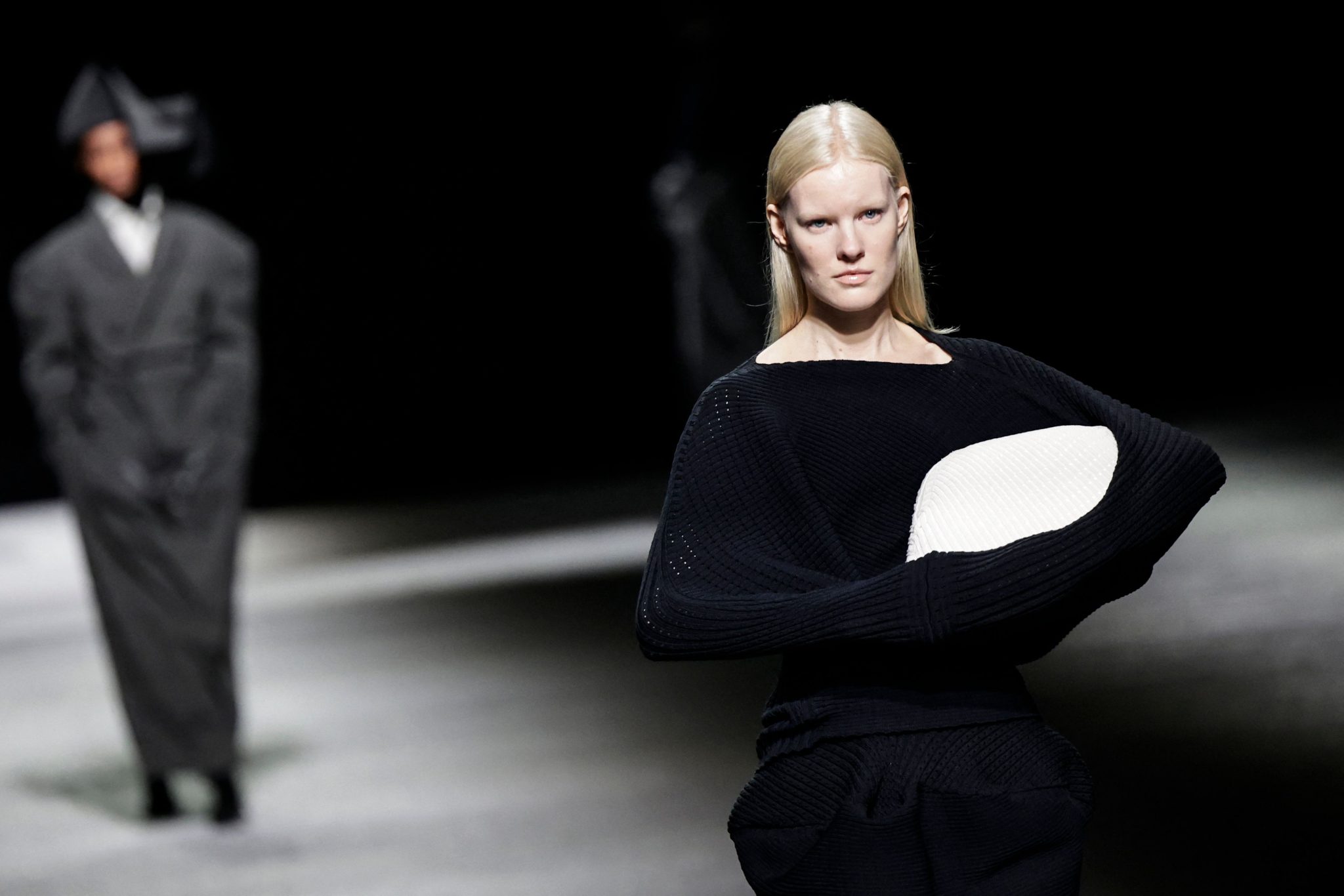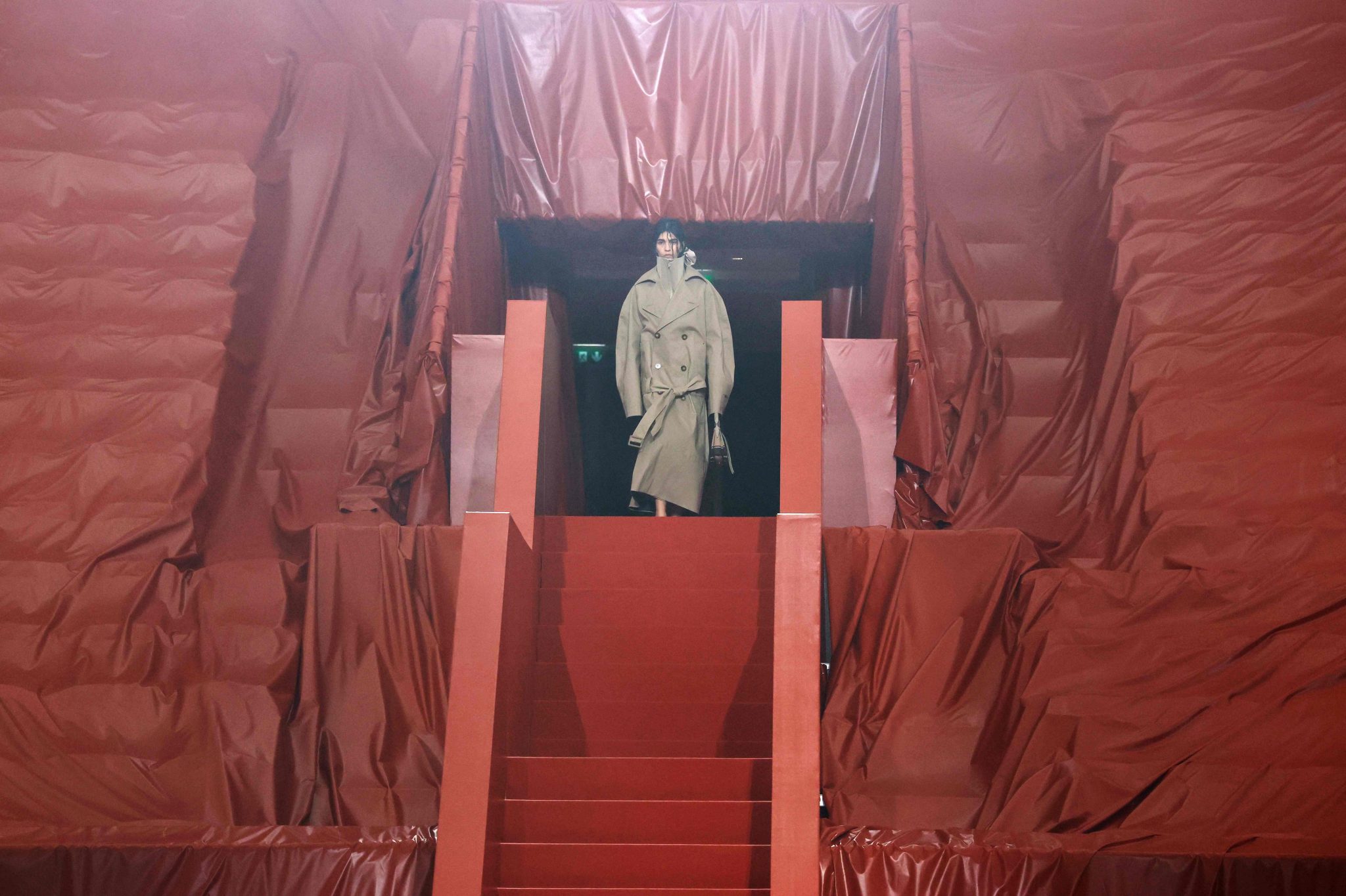 Kolekcija je uravnotežila zemljanu suzdržanost s trenucima prelijevajuće fantazije, dok su tkanine tkane lureksom i silikonom svjetlucale uz prirodnu gazu i svileni žersej. Kako je revija napredovala u večer, aerodinamični kaputi i haljine nalik silfu evocirali su noćni let, oživljavajući kolekciju osjećajem kretanja, lakoće i poetske transformacije.