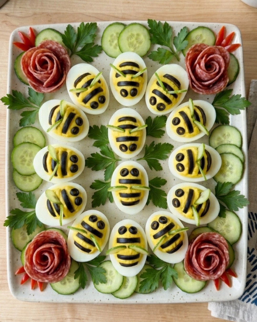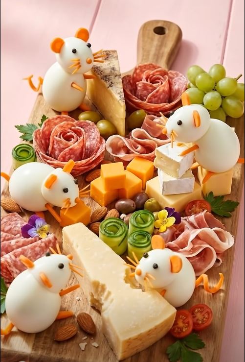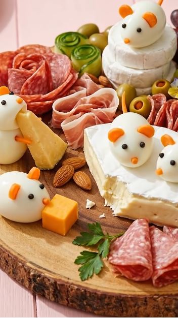 Sve detalje poput uši, oči, repa ili njuške režete od postojećih namirnica (crno – papar i maslina, zeleno – maslina, svježi krastavci i paprika, žuto – sir i žuta paprika, narančasto – mrkva i sir te crvena – rajčica, rotkvica i crvena paprika).