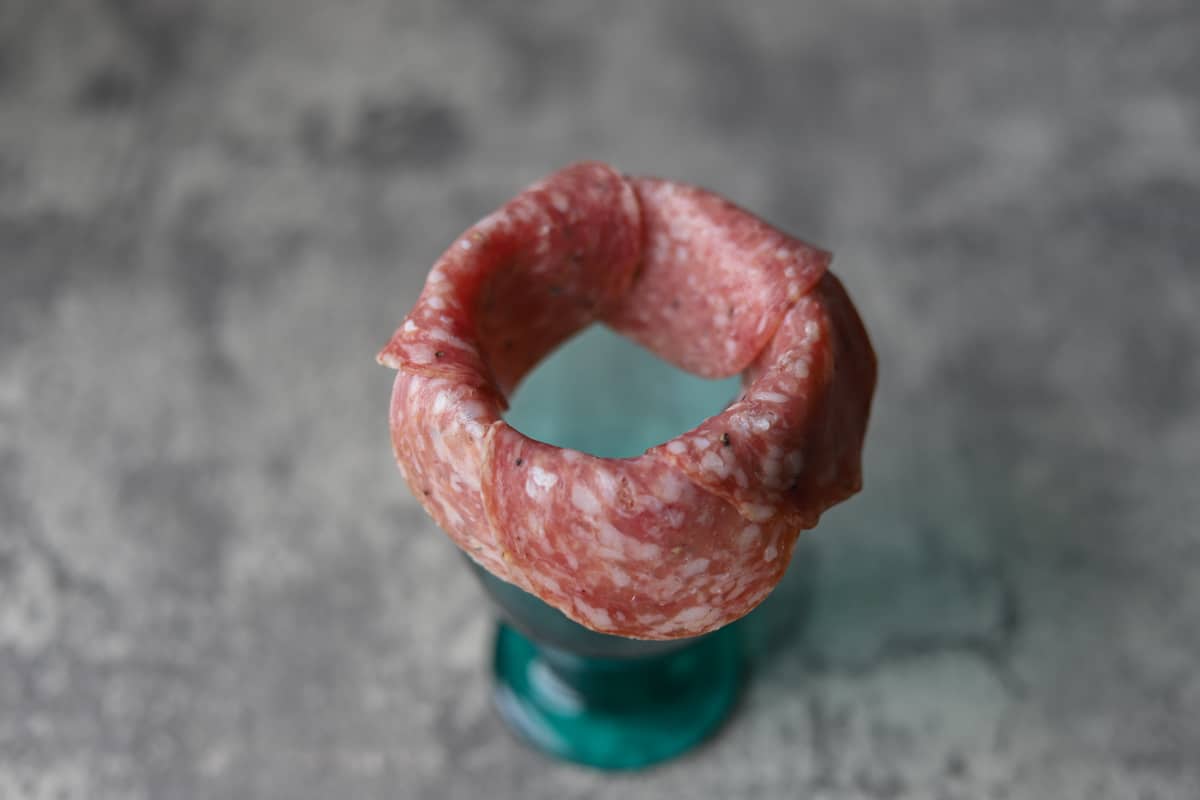 Cijela tajna vjernog izgleda mišića je u izrezanim detaljima od salame. Oči i brkovi su od masline.
