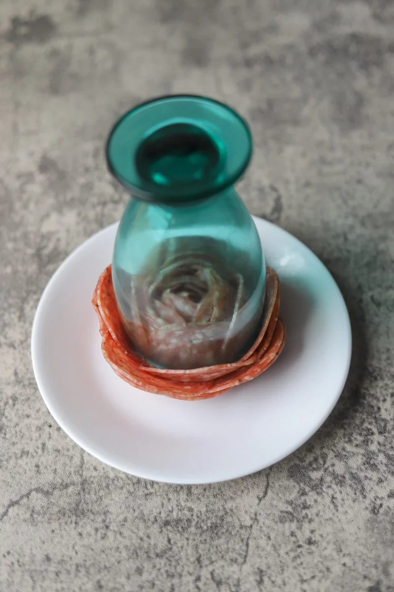 Na fotografijama je prikaz izrade ruža od salame, korak po korak. Na isti način možete napraviti ruže od polutvrdog sira (Gauda, Tilzit, Ementaler)